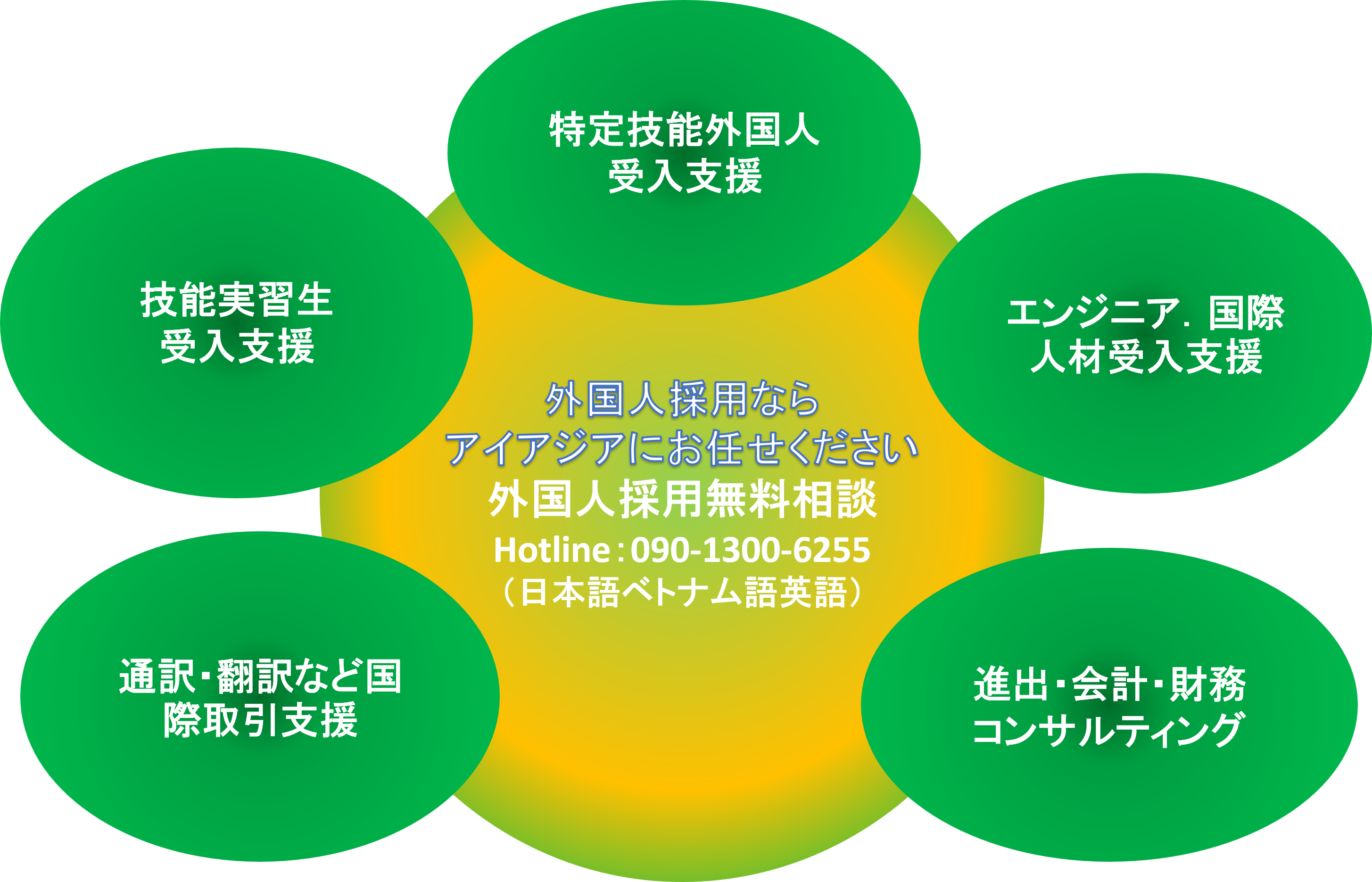 アイアジア国際株式会社は外国人の採用支援をしており、支援企業数 200社、年間採用支援数500人以上、累計5000人以上の実績で、各地に常勤通訳者を14名配置し、外国人と企業様、監理団体様に関する問題に迅速に対処いたします。